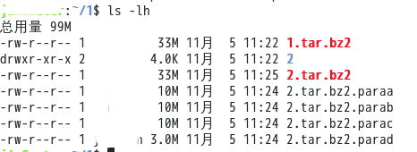 split -b 分割成多少大 要分割的文件 分割后的文件名