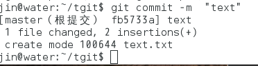 git commit -m "text"#-m后面输入的是本次提交的说明,可以输入任意内容,